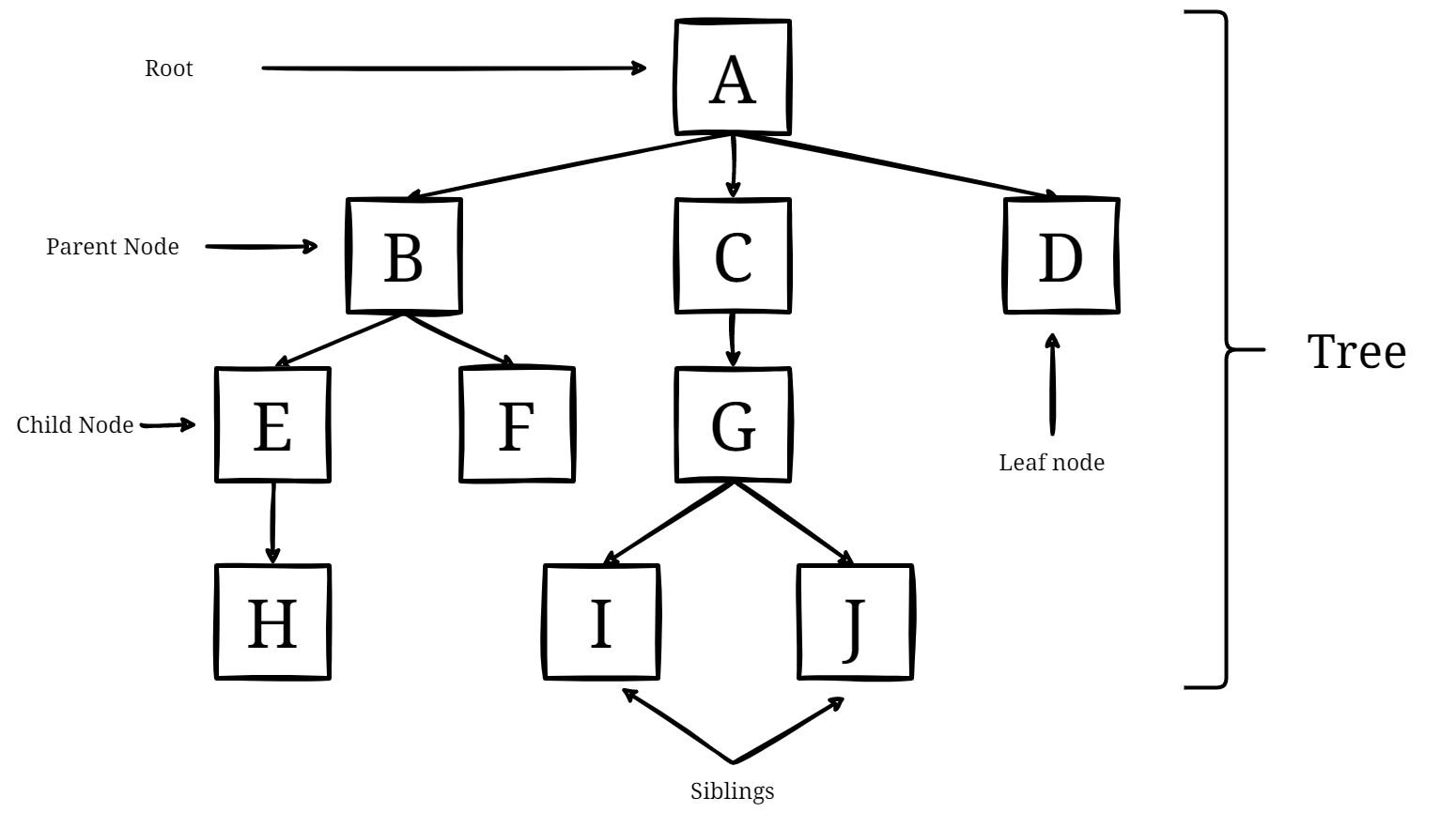 Trees (Non-Linear data structure): A tree can be used to represent a family tree or a company organizational chart. Each node in the tree represents a person or a position, and the edges represent relationships or hierarchies between them.