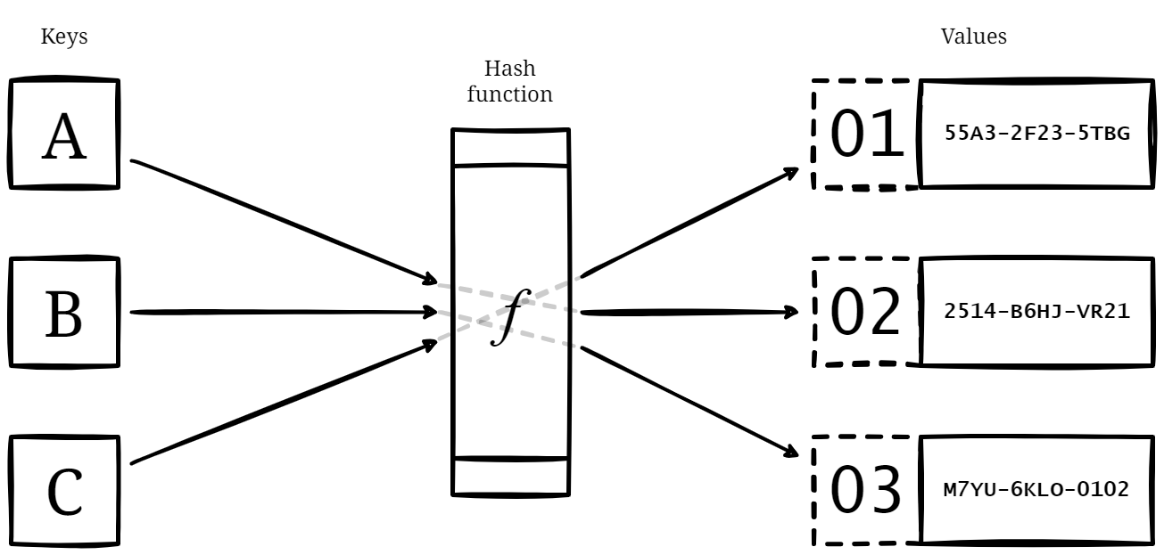 Hash tables: A hash table can be used to store and manage a collection of key-value pairs, such as a dictionary or a phone book. The keys are hashed to produce an index into a table, and the associated values can be quickly retrieved using the index.