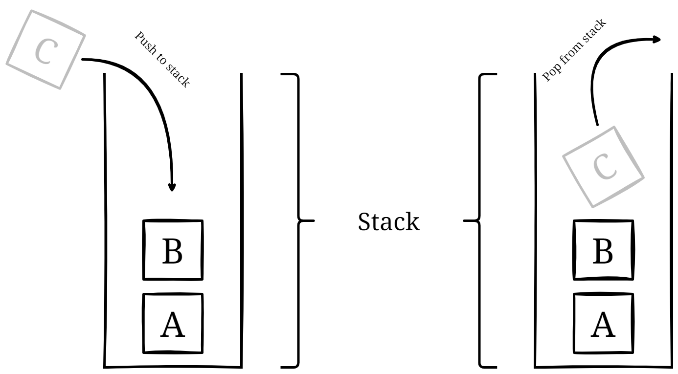 Stacks (Dynamic linear data structure): A stack can be used to implement an undo/redo function in a text editor or to manage a history of pages visited in a web browser. When an action is performed, it is added to the top of the stack, and when the user wants to undo or redo an action, the top element is removed from the stack and executed in reverse order, a so called “Last in, First out”.